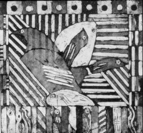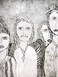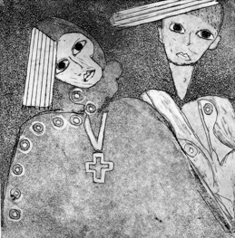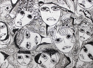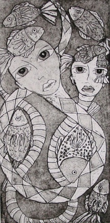 My etchings explore the various roles that women portray: the mystery, the glamour and the spirit of the female consciousness. I was introduced to the printmaking process at Flatbed Press in Austin, Texas. I was taken in by the simplicity of the lines and the clarity of the images. I fell in love with the process or what I call the ritual. The dance between the artist, the copper plate and the flatbed press.